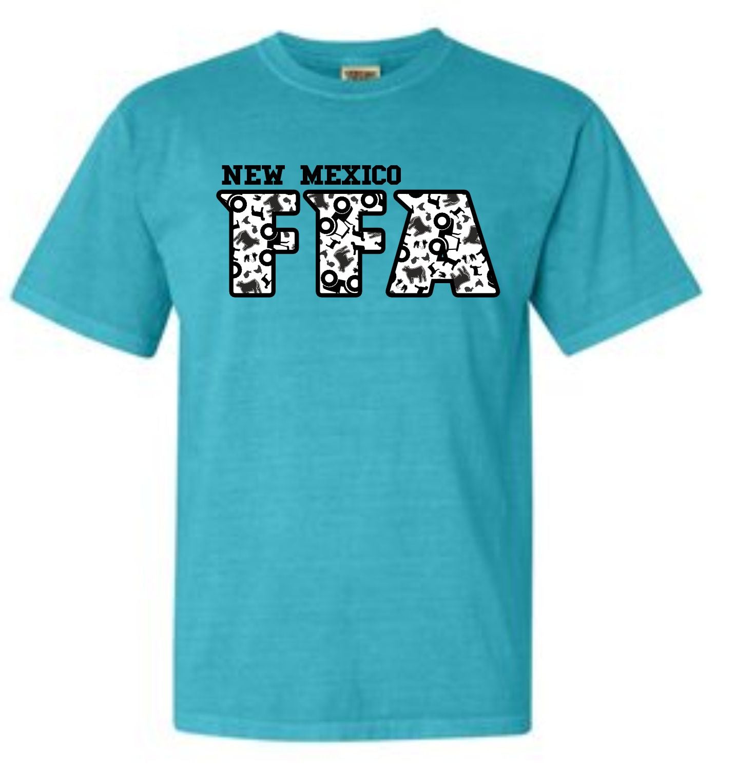 FFA Patchwork Comfort Colors Shirt with New Mexico above the letters